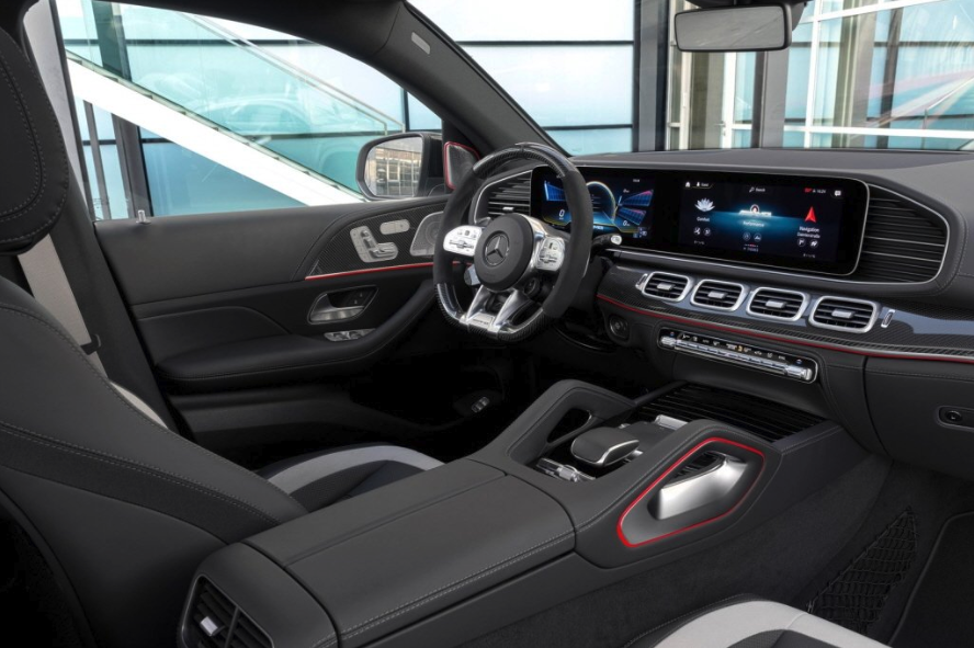 벤츠 GLE 63S 쿠페 풀체인지의 실내는 AMG만의 전용 디자인을 적용시켰는데, AMG 로고를 추가하며, 시트는 나파가죽으로 처리하고 내부 트림은 카본으로 장식했습니다.