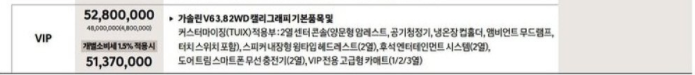 캘리그래피는 VIP 패키지까지 살펴보자면 가격은 5,137만 원으로 개소세 5% 기준 5,280만 원으로 책정되었습니다. 캘리그래피에 추가적으로 2열 센터콘솔 즉, 암레스트와 공기청정기, 냉온장 컵홀더, 2열 무드램프 그리고 터치 스위치가 있으며, 2열 스피커 내장형 윙타입 헤드레스트와 2열 엔터테인먼트 그리고 도어트림 스마트폰 무선충전이 추가가 된다고 합니다.