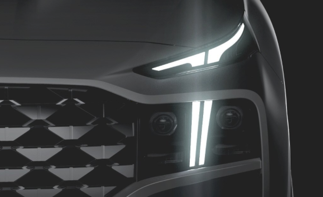 차량의 전면부에는 더 뉴 그랜저 이후로 현대차에서 공통적으로 확인할 수 있는 그릴 그리고 헤드램프가 하나로 통합되어있는 모습이 특징적이라고하며, 이 부분에 수평적인 구조로 그릴과 수직적 구조의 주간주행등 램프를 대비하여 멀리서도 확연하게 인식을 할 수 있으며, 강인하고 독창적인 이미지 또한 완성되었다고 합니다.