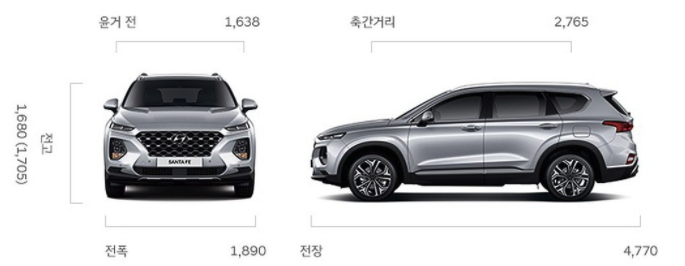 현행 4세대 싼타페는 인간 중심적인 신개념 중형 SUV로 개발되어진 신차로써 제품개발을 할 당시 처음부터 마지막 완성까지 탑승자와 구매자 소비자들의 편의를 고려했다고 합니다. 싼타페는 전장이 4770mm, 전폭이 1890mm, 전고가 1680mm, 휠베이스는 2765mm 입니다.