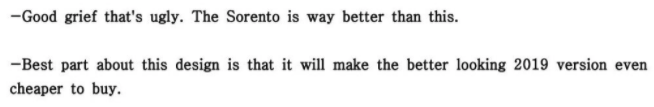 그 중에 싼타페 페이스 리프트 후면부가 아주 멋있다는 의견도 보이며, 전에 나왔던 모델에 비해서 디자인이 너무나도 깔끔하고 많이 좋아졌다는 등 디자인은 인정을 받는 것 같은 등의 호평이 많이 보이고 있습니다.