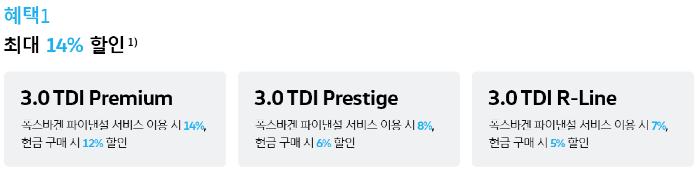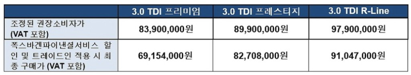 폭스바겐 투아렉 상위 모델 또한 현재 권장 소비자 가격 대비로 투아렉 3.0 TDI 프레스티지가 8%이며, 투아렉 3.0 TDI R-Line은 7%의 혜택을 받아볼 수 있다고 합니다.