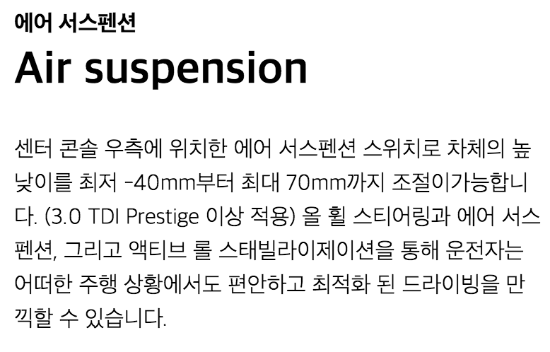 합리적인 가격에도 고객들이 선호하는 대표적인 옵션인 에어 서스펜션과 사륜 조향 시스템 등으로 최첨단 사양들을 탑재한 것으로 알려져있습니다.